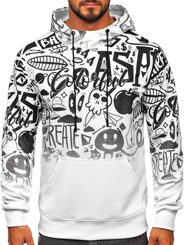 Biała z nadrukiem bluza męska z kapturem Denley 141032