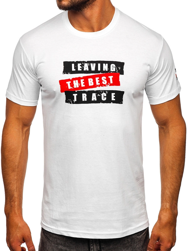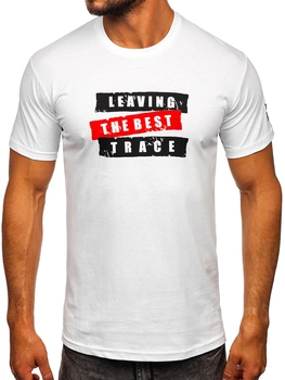 Biały bawełniany t-shirt męski z nadrukiem Denley 14514