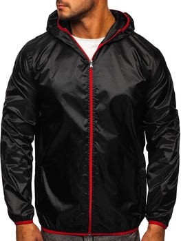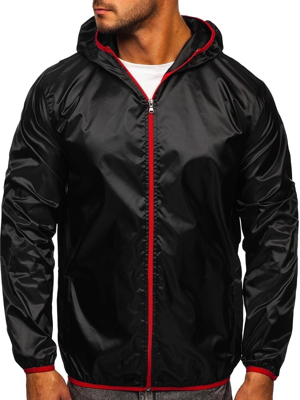 Czarna przejściowa kurtka męska wiatrówka z kapturem BOLF 5060