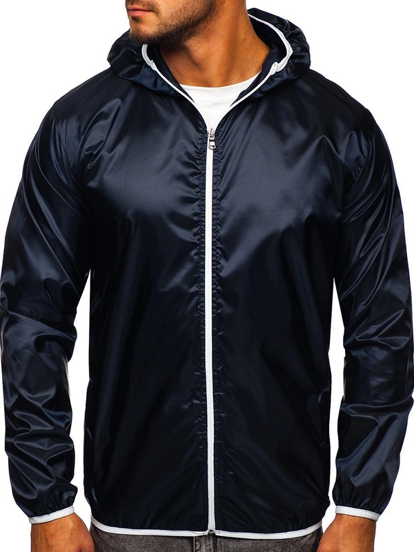 Granatowa przejściowa kurtka męska wiatrówka z kapturem BOLF 5060