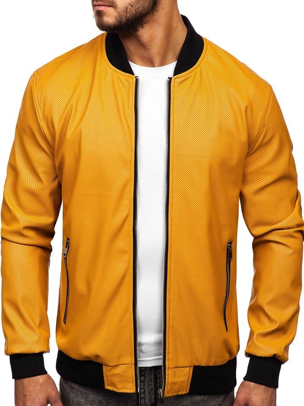 Kurtka męska skórzana z kapturem czarno-żółta Denley HY614