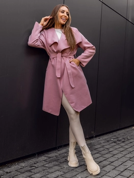 Różowy długi płaszcz damski Denley 5079