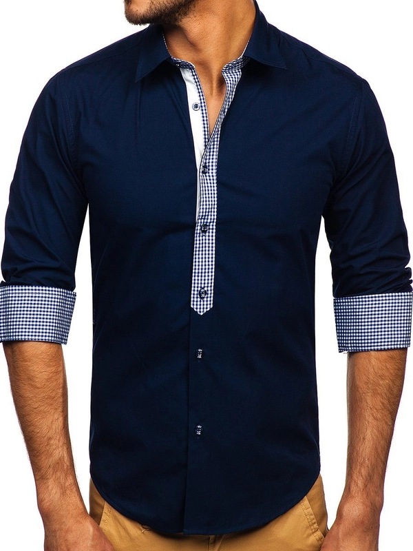 Koszula męska z długim rękawem granatowa Bolf 1721-1