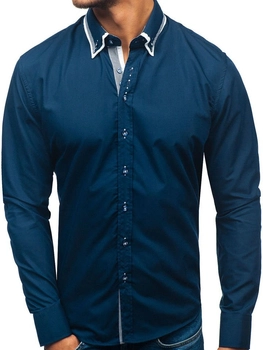 Koszula męska elegancka z długim rękawem granatowa Bolf 6857